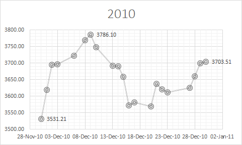 Titik tertinggi 2010 terjadi pada awal desember dan kemudian turun