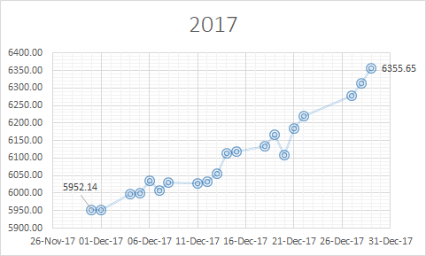Untuk menjawab pertanyaan tersebut, saya melakukan pengamatan data pergerakan IHSG bulan Desember dari tahun 2010 hingga 2017 sebagai berikut :