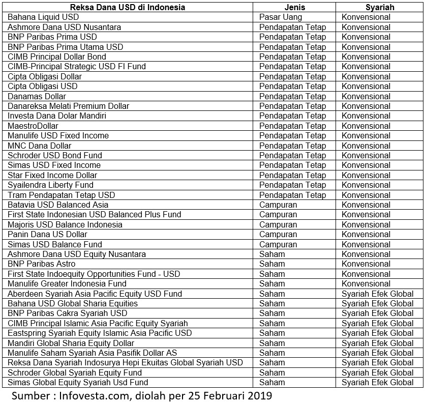 Berikut ini adalah produk reksa dana dollar di Indonesia