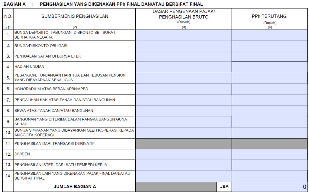 Bentuk Kolom Penghasilan Kena Pajak Final sebagai berikut