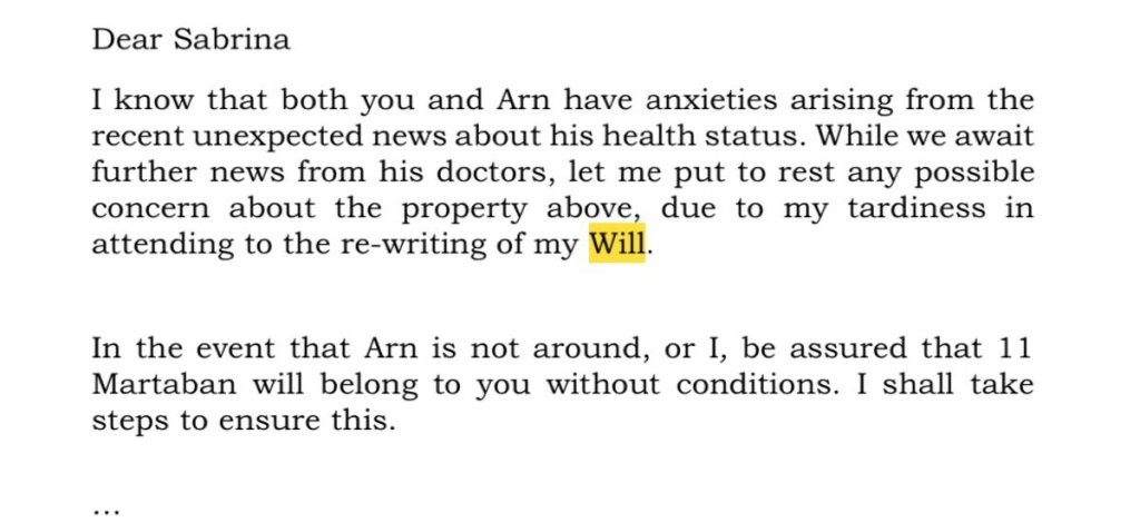 Atas sebuah Ruko (shophouse) senilai SGD 2.1 juta (Rp 23 M) yang DPnya SEBELUM menikah dan dicicil SETELAH menikah agar masuk dalam harta Gono Gini perceraian