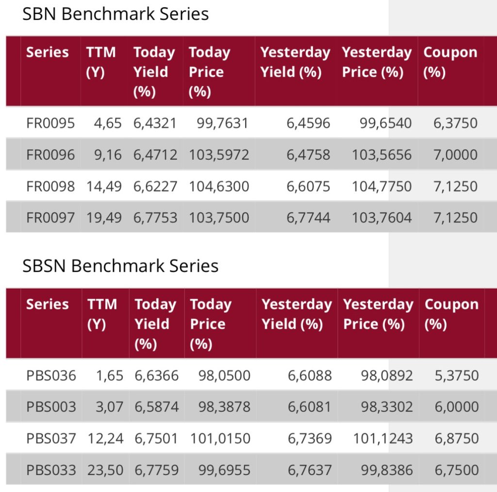 Angka yang digunakan adalah Today Yield (YTM)