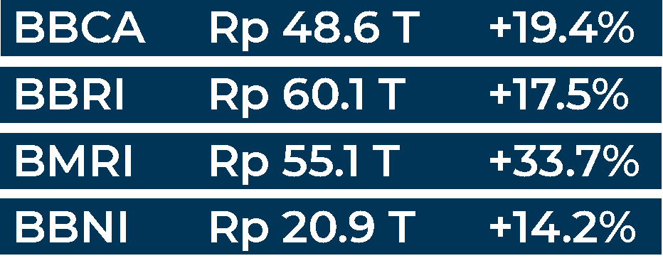 4 bank besar Indonesia yaitu BBRI, BBCA, BMRI, dan BBNI (dikenal sebagai Big Four), sudah mempublikasikan laporan keuangan 2023.