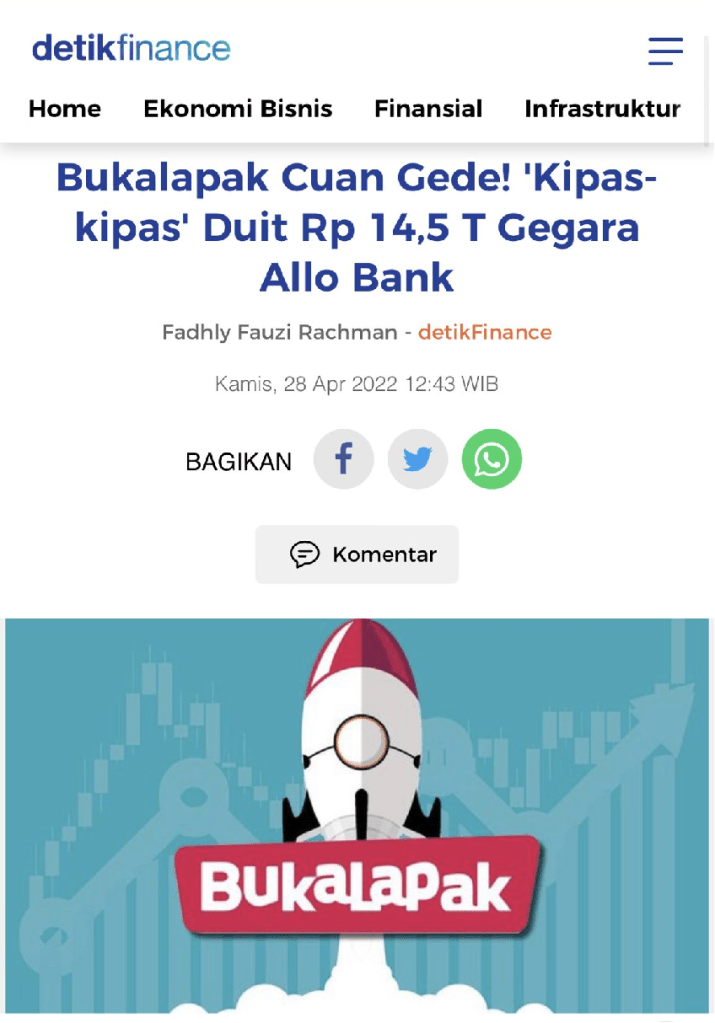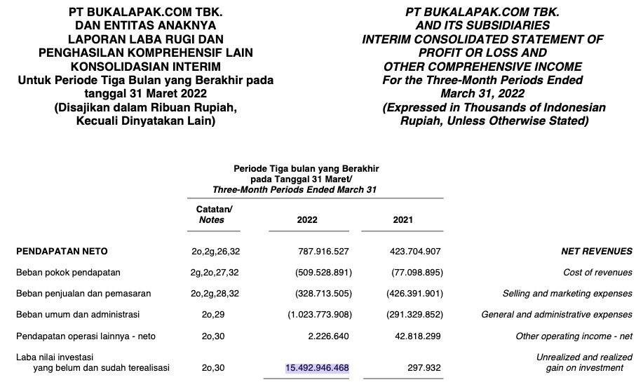 Pembahasan ini terinspirasi dari laba bersih BUKA Rp 14 T di Q1-2022 yg menjadi headline tidak hanya di media ekonomi, tapi juga media nasional seperti detik dan kompas.