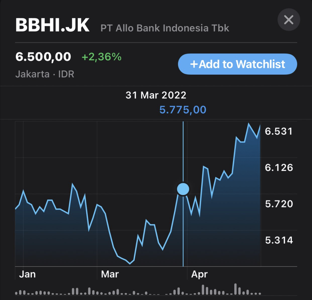 Laporan keuangan BUKA yang ciamik di Q1-2022 karena pada Desember 2021 yg lalu membeli 2.49 miliar lembar Allo Bank (BBHI) seharga Rp 478 dgn nilai total Rp 1.19 T.