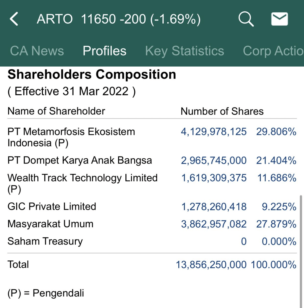 Bukankah dia sudah melakukan akuisisi saham ARTO pada harga sangat murah bahkan sebelum IPO?
