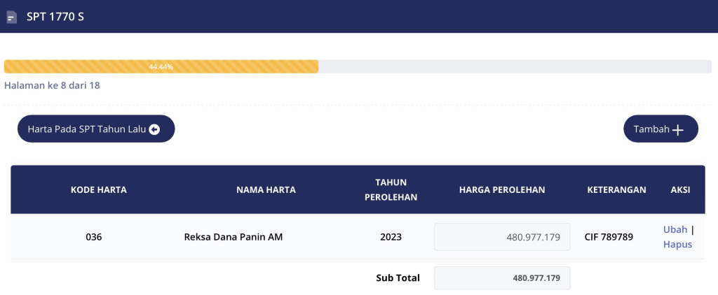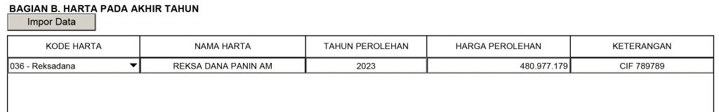 Pelaporan Harta reksa dana menggunakan kode 036