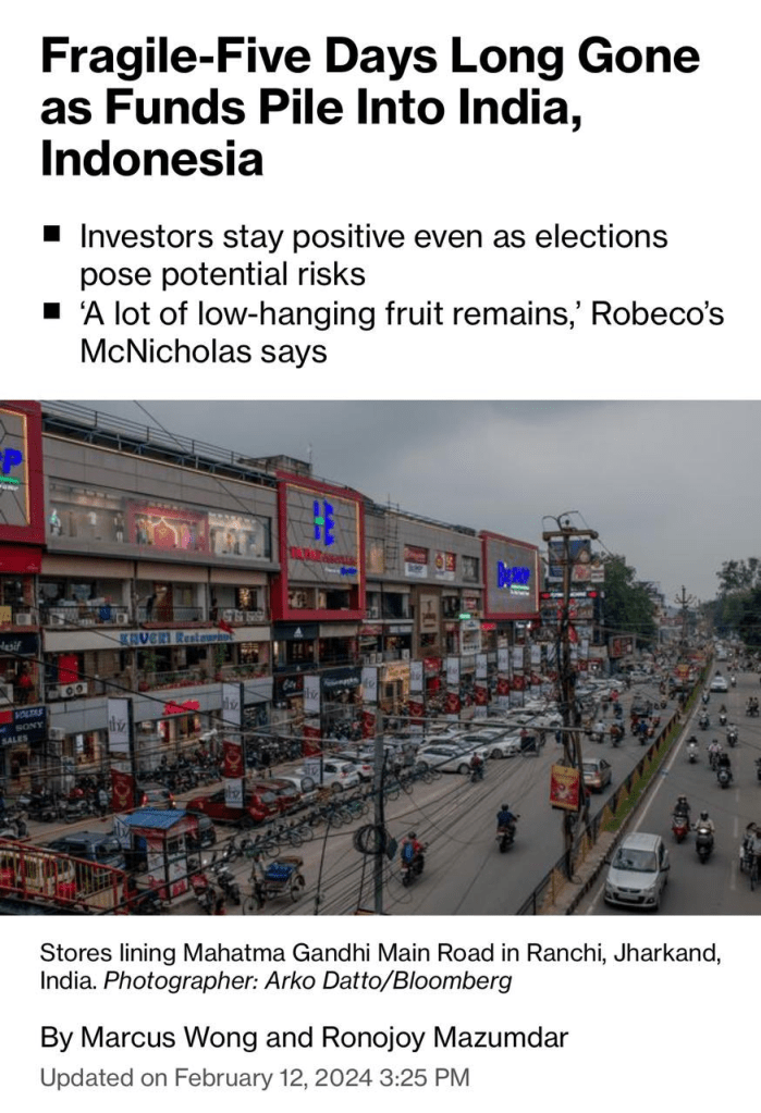 “Fragile-Five Days Long Gone, as Funds Pile into India, Indonesia”