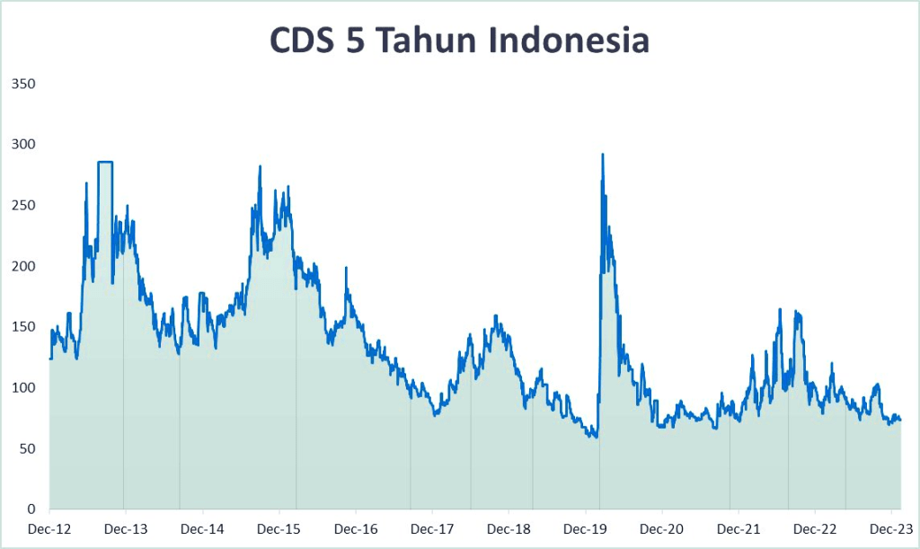 Berapa angka CDS Indonesia saat ini? per 12 Februari 2024 ini hanya 73 bps atau 0.73%.