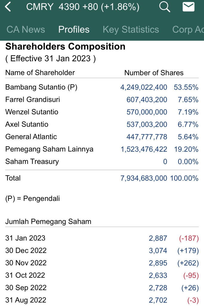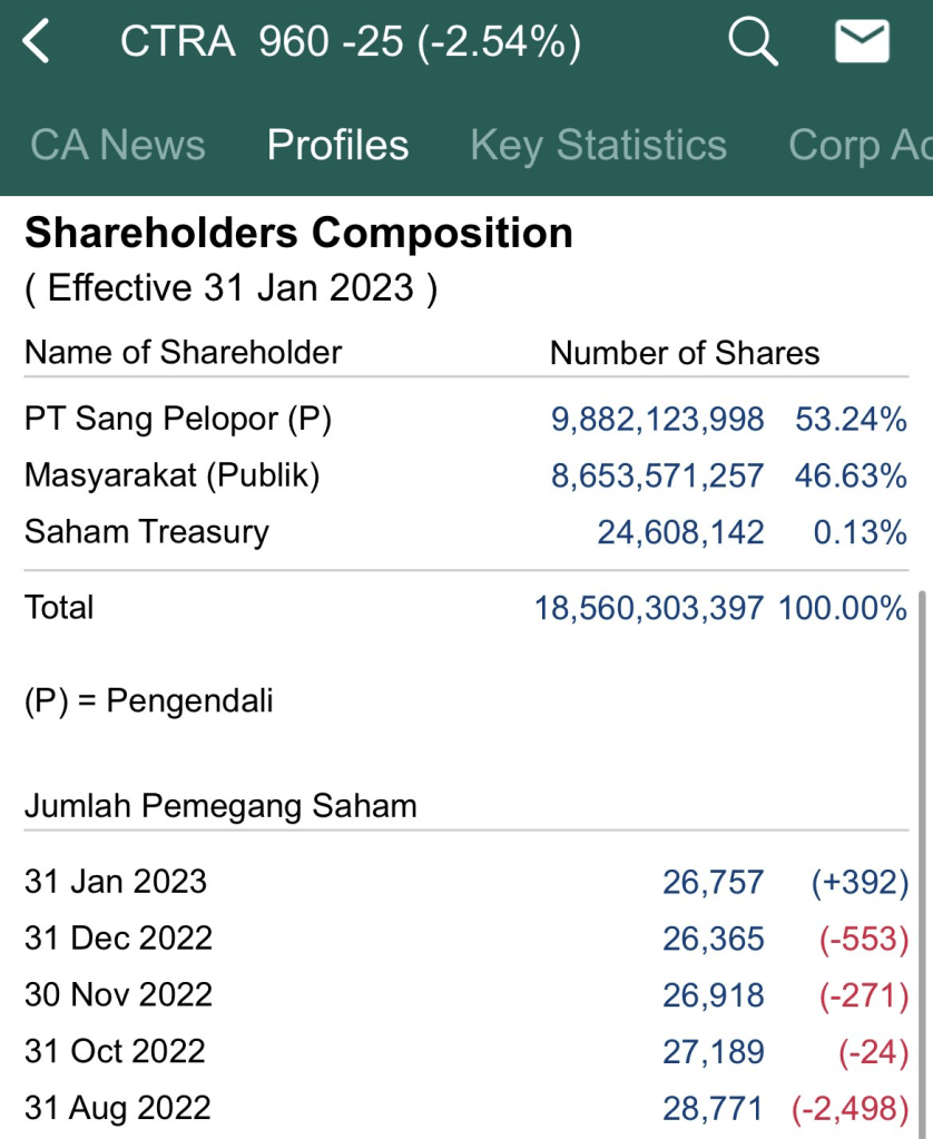 Saham publik 46%, dimiliki 26.757 investor per Januari 2023,