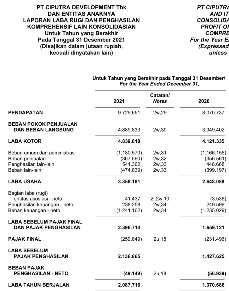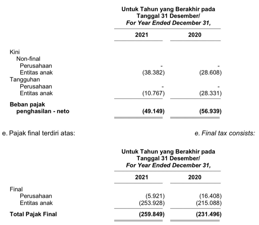 Mengacu ke Laporan Keuangan 2021 karena yang full year 2022 belum terbit