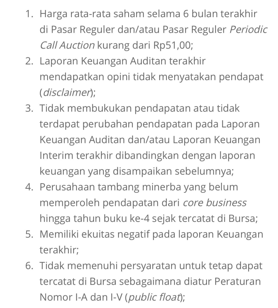 Kriteria papan pemantauan khusus ada 11, begitu ada salah satu dari 11 ini sahamnya akan dikasih notasi khusus X.