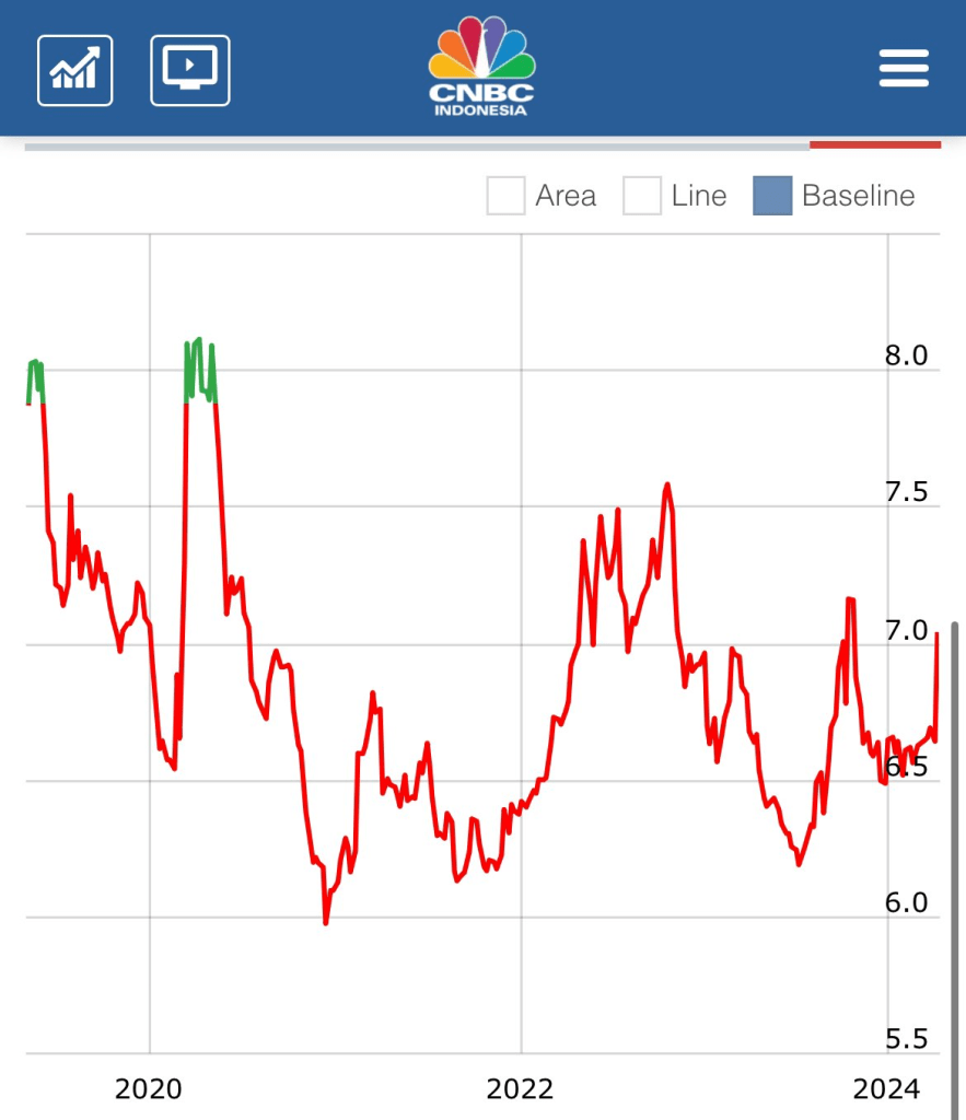 Dalam wawancara dengan CNBC Indonesia hari ini, salah satu pertanyaannya adalah Yield Surat Utang Negara (SUN) sudah menembus 7%.