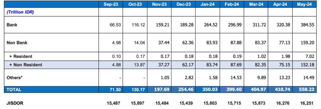 Per Des 23, kepemilikan asing (non residen) dari Rp 62 T, per Mei 24 menjadi Rp 152 T atau naik Rp 90 T.