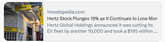 Waktu mobil listrik sedang tren, Hertz (perusahaan penyewaan mobil berskala global – seperti Assa dan Trac di 🇮🇩) berinvestssi membeli mobil listrik dalam jumlah besar.