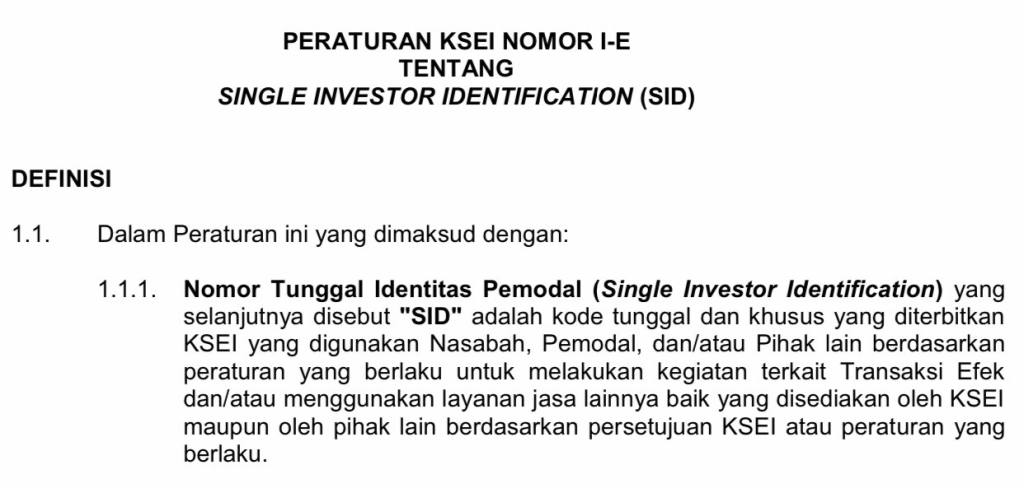 Di pasal 38 diatur bahwa Manajer Investasi wajib menyediakan Nomor Tunggal Identitas Pemodal atau sering dikenal dengan nama Single Investor Identification SID.