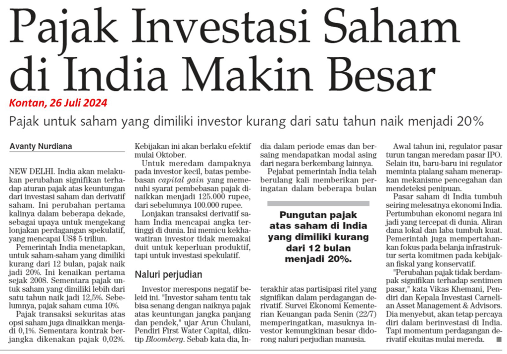 Di Kontan edisi 25 Juli 2024, ada berita bahwa India akan melakukan perubahan signifikan pada aturan perpajakannya.