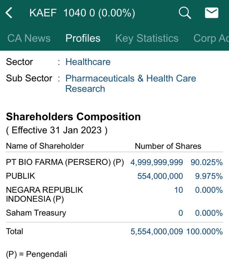 Mengacu ke Prospektus KAEF per 1 Feb 2023