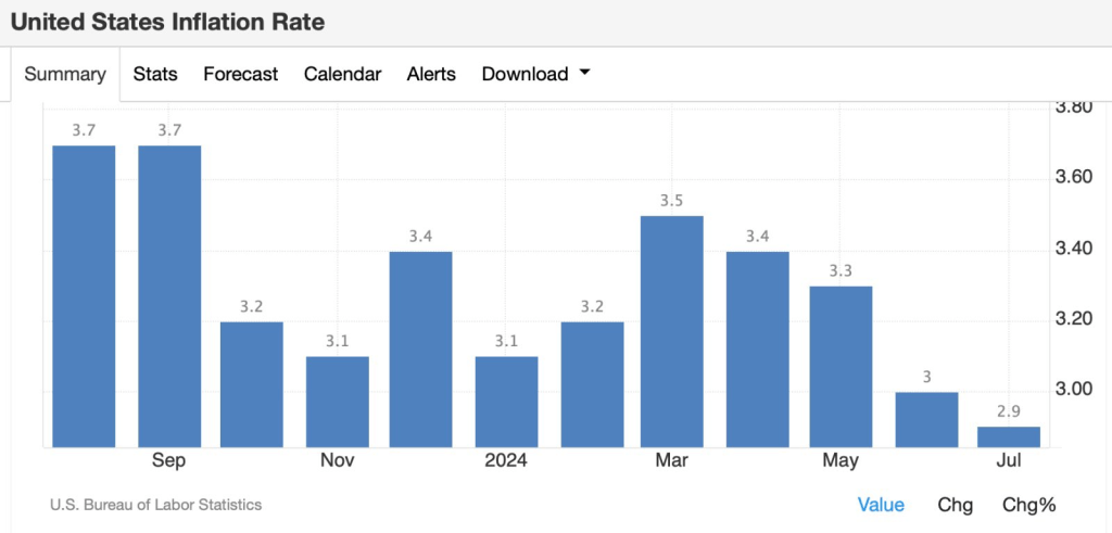 Hal ini disebabkan karena pelaku pasar memiliki “ekspektasi dan keyakinan” suku bunga akan turun. Penyebabnya data inflasi Juli 🇺🇸 yang menjadi penentu penting suku bunga, kembali mengalami penurunan.