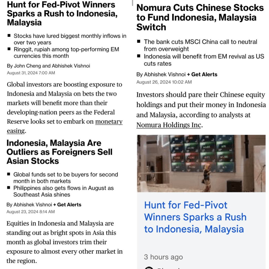 Jelang penurunan suku bunga 🇺🇸 atau dikenal dengan Fed Pivot, Indonesia dan Malaysia menjadi negara tujuan utama investor asing.