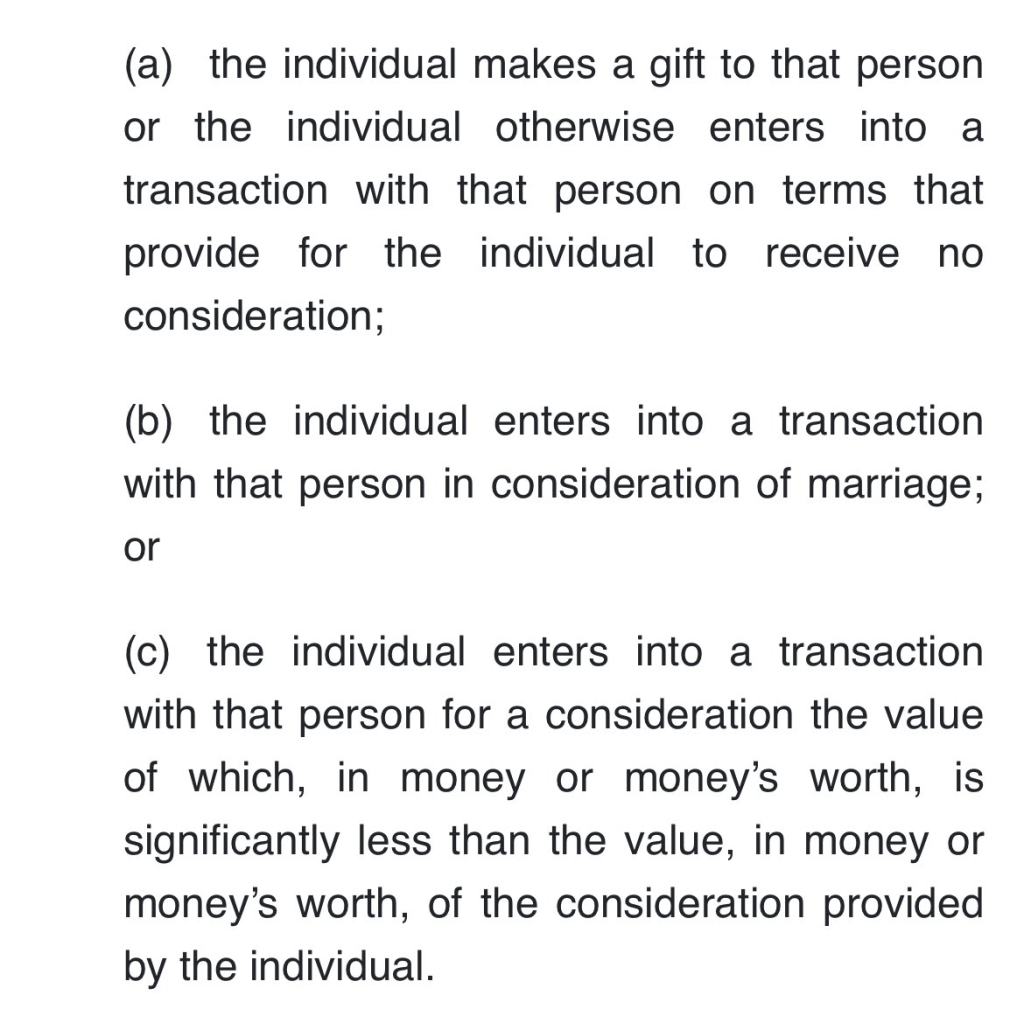 Dalam hukum 🇸🇬 terkait penjualan aset properti dan kebangkrutan ada ketentuan transaksi dinyatakan under value / kemurahan sebagai berikut: