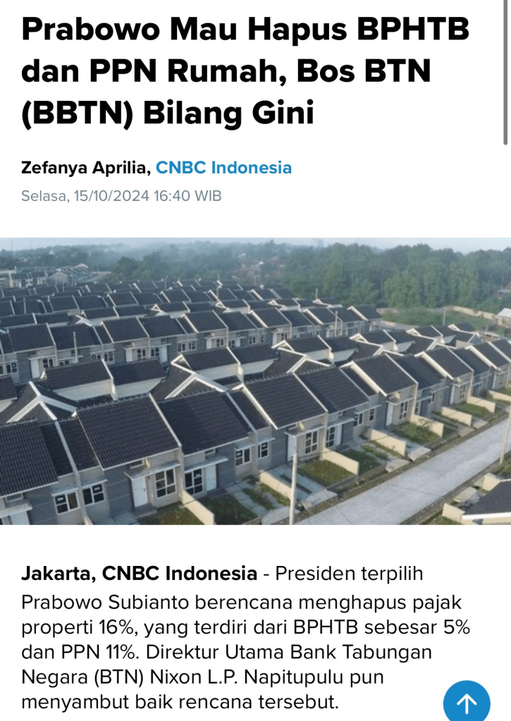 Berdasarkan berita CNBC Indonesia, item yang mau dihapus adalah Ppn 11% dan BPHTB 5%, total 16%.