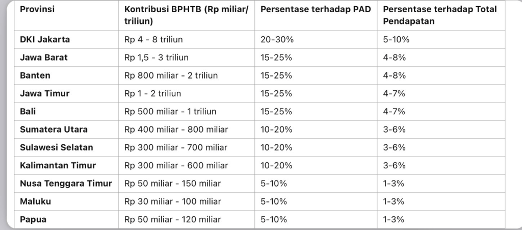 Berapa porsi BPHTB dari Pendapatan Asli Daerah (PAD) dan Total Pendapatan Daerah (termasuk transfer dari pemerintah pusat)?