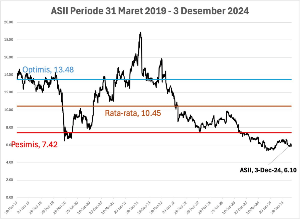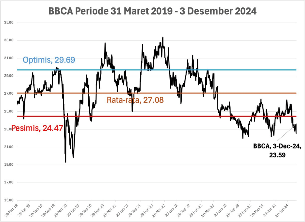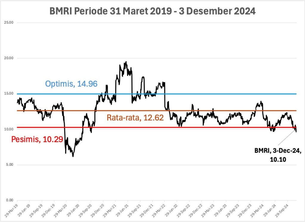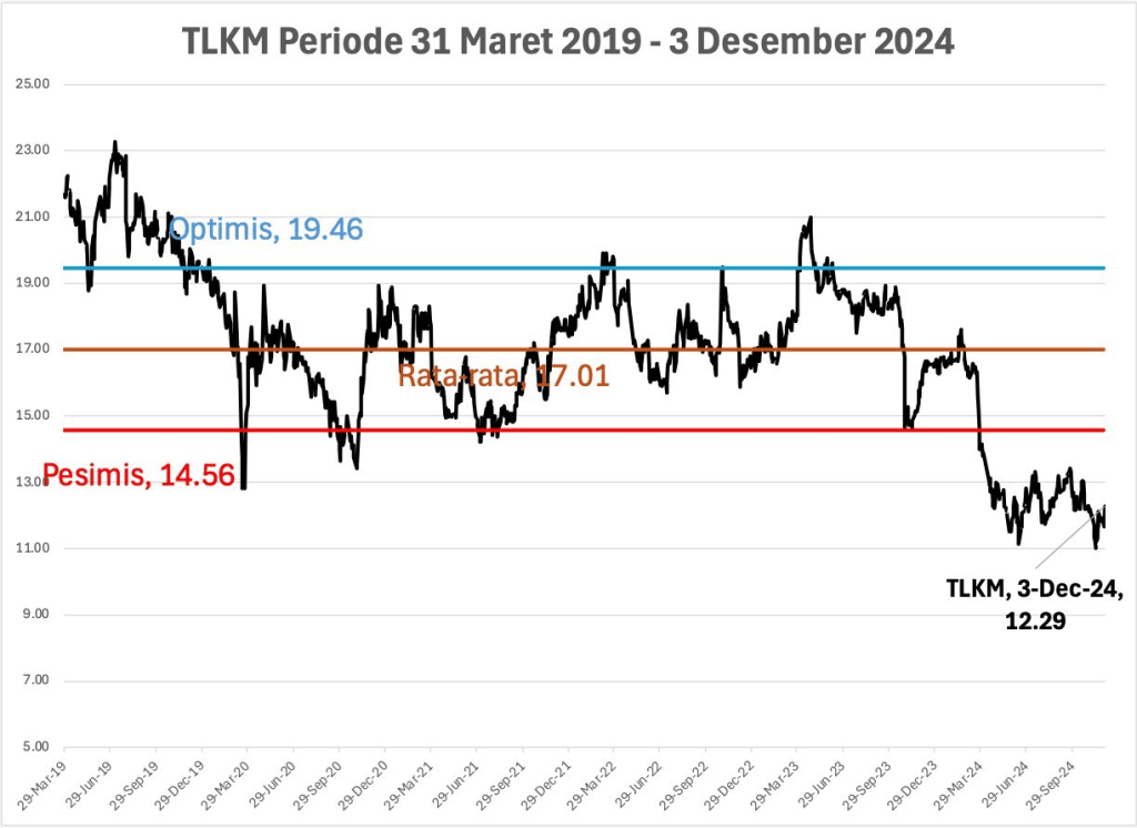 Menggunakan metode Price Earning Ratio PER historis, plus minus 1 standar deviasi dan rata-rata selama 31 Maret 2019 hingga 3 Desember 2024 sebagai berikut :