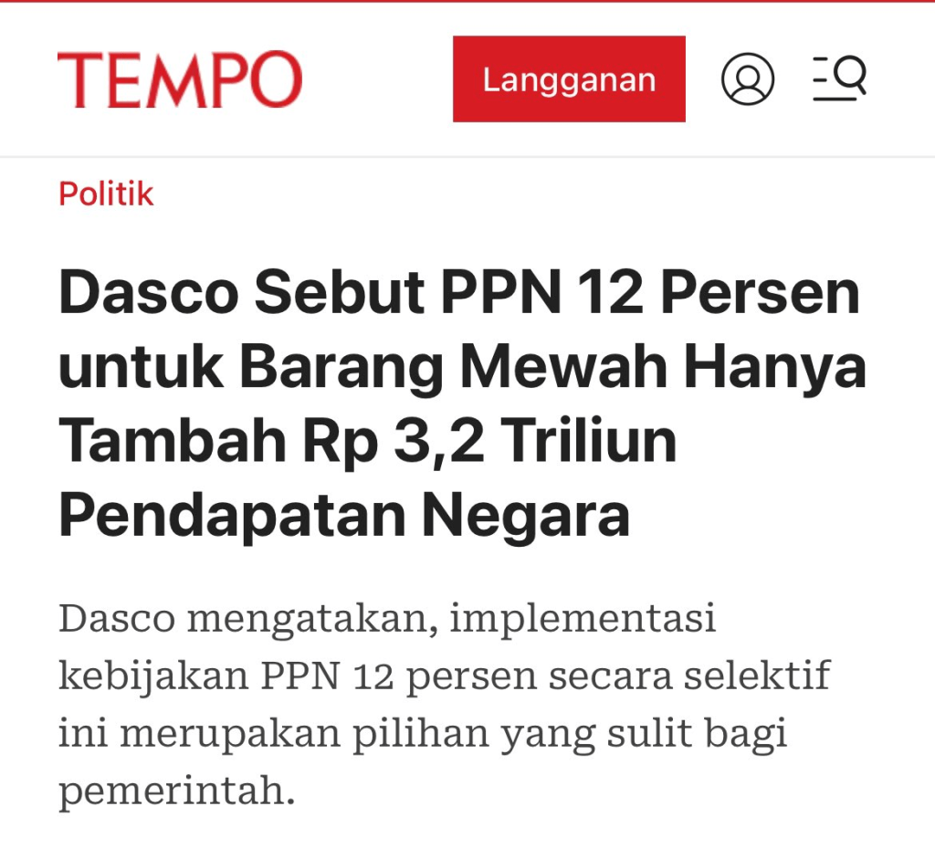PPN barang mewah 12% (+) Pendapatan Rp 3 T