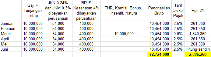 Januari – Juni bekerja di Perusahaan A Dengan gaji gross Rp 10 juta.