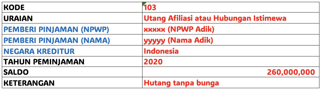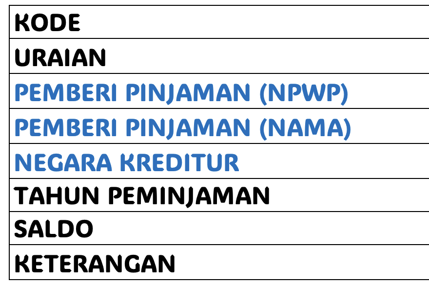 Format Utang dalam Coretax ini ada info tambahan, NPWP dan Nama Pemberi Pinjaman serta Negara Kreditur