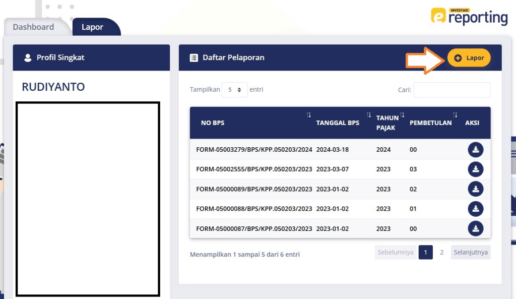Selanjutnya pada kanan atas terdapat tombol lapor, klik tombol tersebut