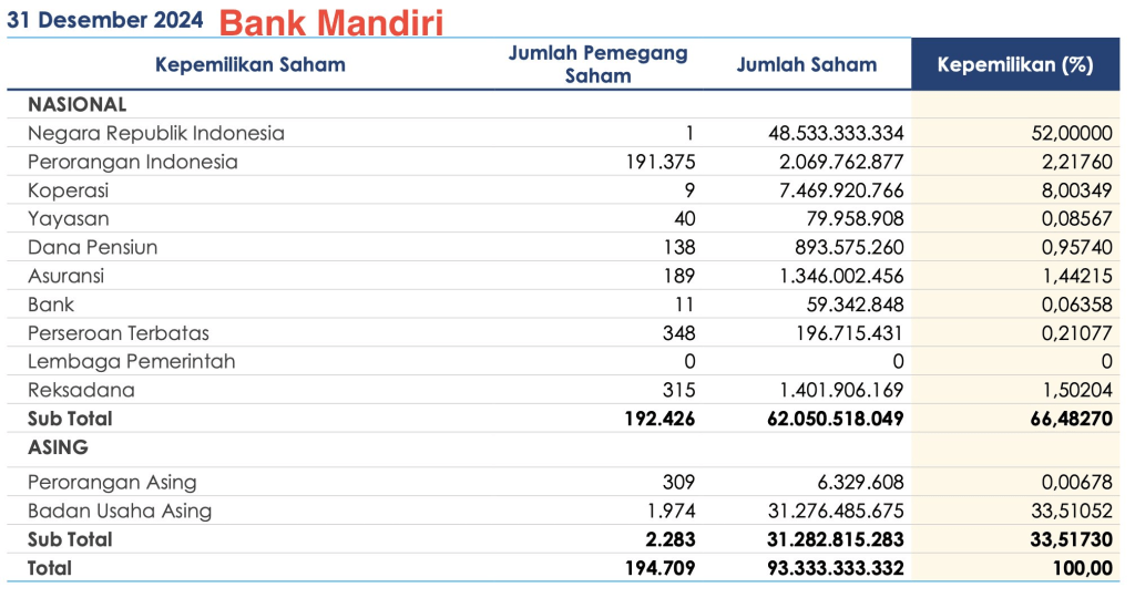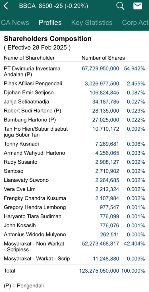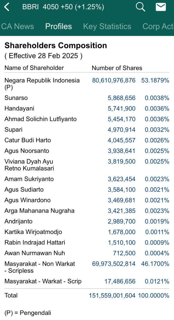 Selain dari laporan keuangan tahunan, informasi ini juga bisa dilihat data kepemilikan efek yang ada KSEI secara bulanan. Cuma perlu sedikit memahami teknik pengelolaan data karena format datanya .txt sehingga perlu diolah terlebih dahulu.