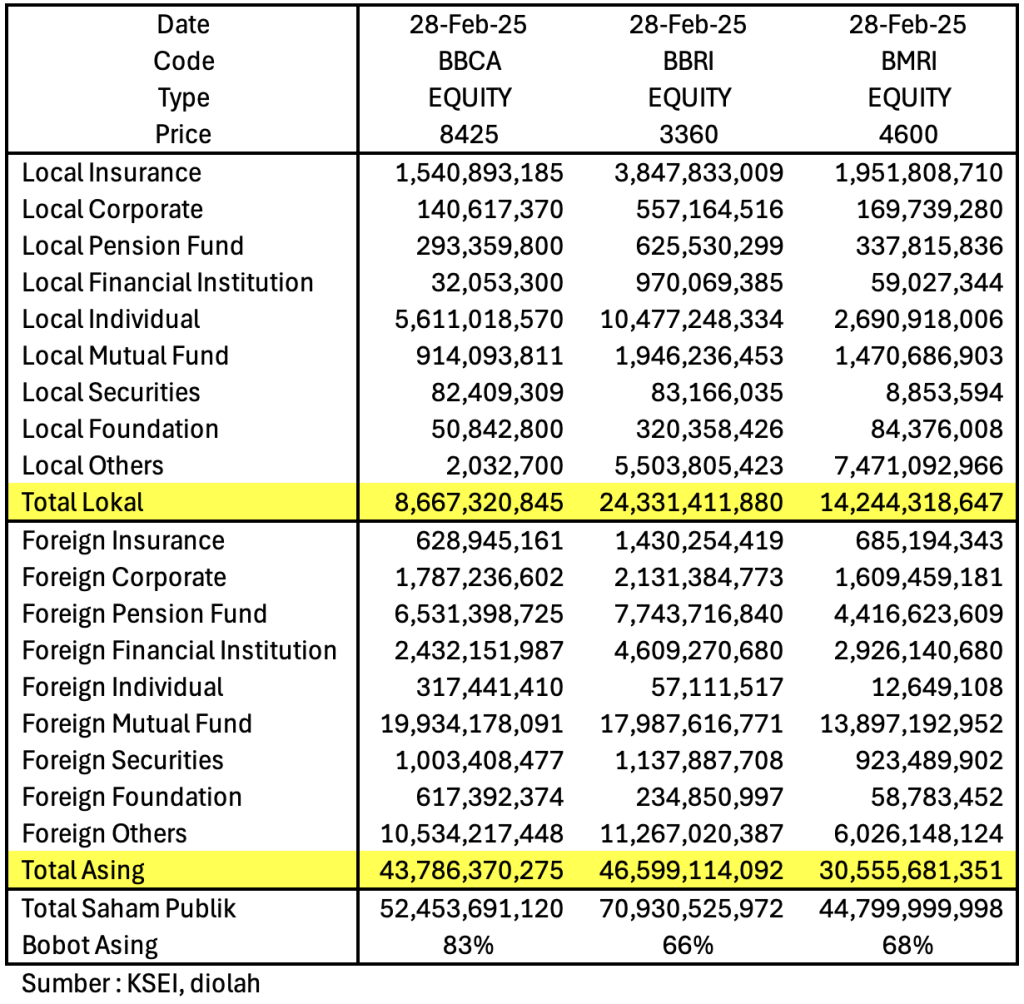 Artinya dari saham milik publik, 70-85% itu dimiliki asing, no wonder transaksi mereka yang menggerakan harga saham ini.