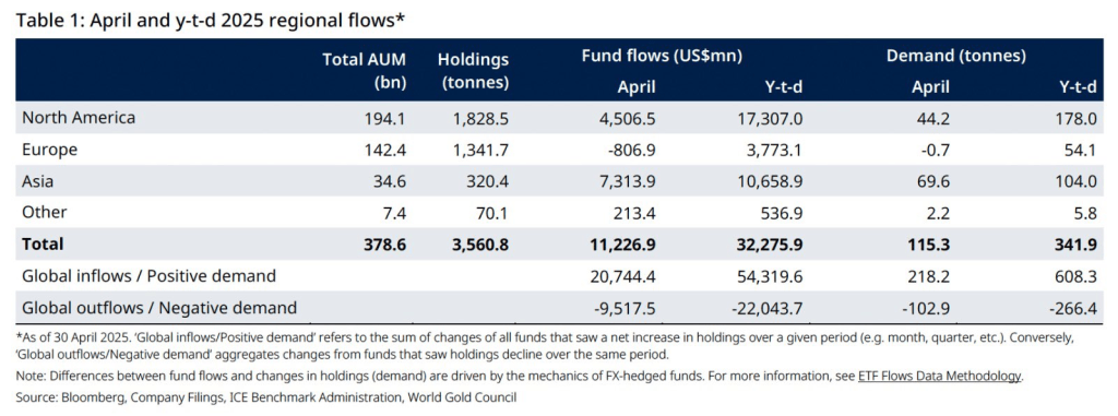 Salah satu penyebab meningkatnya harga emas adalah pembelian oleh bank sentral dan ETF berbasis emas. Untuk ETF sendiri, dana kelolaan per April 2025 mencapai USD 378.6 Miliar USD (Rp 6.246 Triliun). Sebagai gambaran Market Caps APPL produsen Iphone sekitar USD 3.1 Triliun.