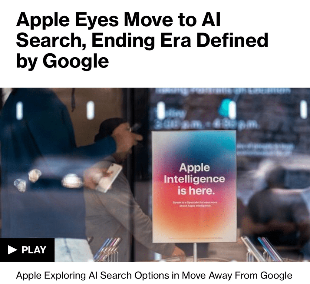 7 Mei lalu, saham Google sempat jatuh sampai 8-9% sehari gara-gara ada salah satu petinggi Apple yang mulai “mempelajari” opsi penggunaan Search Engine menjadi LLM. Artinya kalau klik sesuatu di Google, yang muncul bukan lagi referensi-referensi website yang relevan, tapi langsung jawabannya.