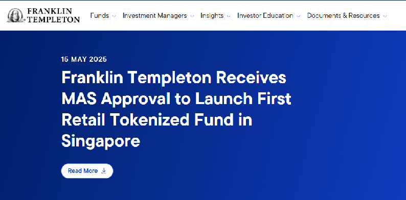 Tokenisasi reksa dana di 🇸🇬 telah mendapat izin dari Monetary Authority Singapore (MAS) – OJK setempat, dikelola oleh Manajer Investasi Franklin Templeton, termasuk jajaran Manajer Investasi besar berskala global juga. Jenisnya reksa dana pasar uang.
