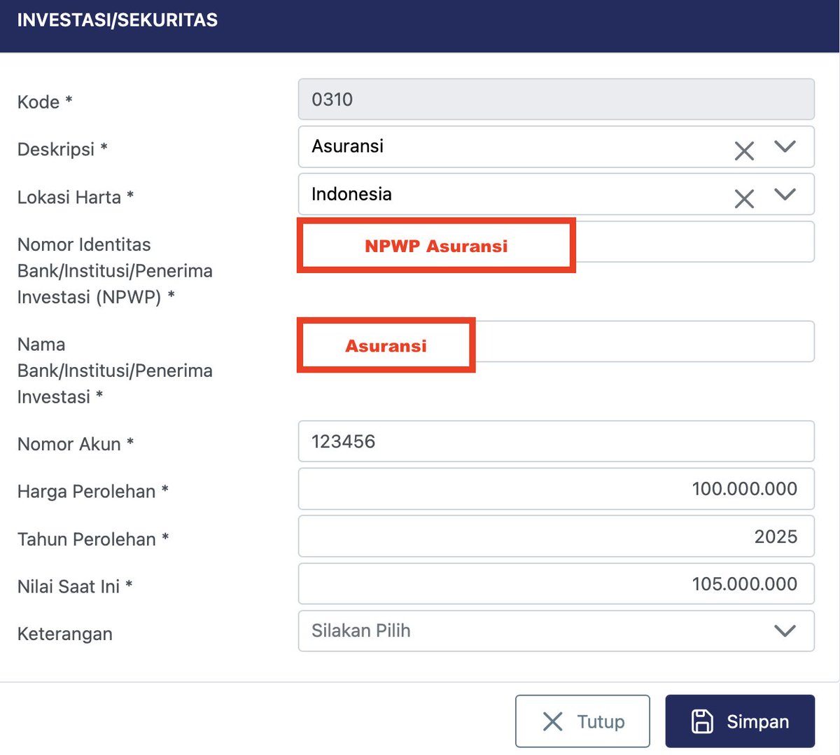 DJP Online tidak ada pilihan asuransi, makanya dicatat dengan kode Aset Lainnya.