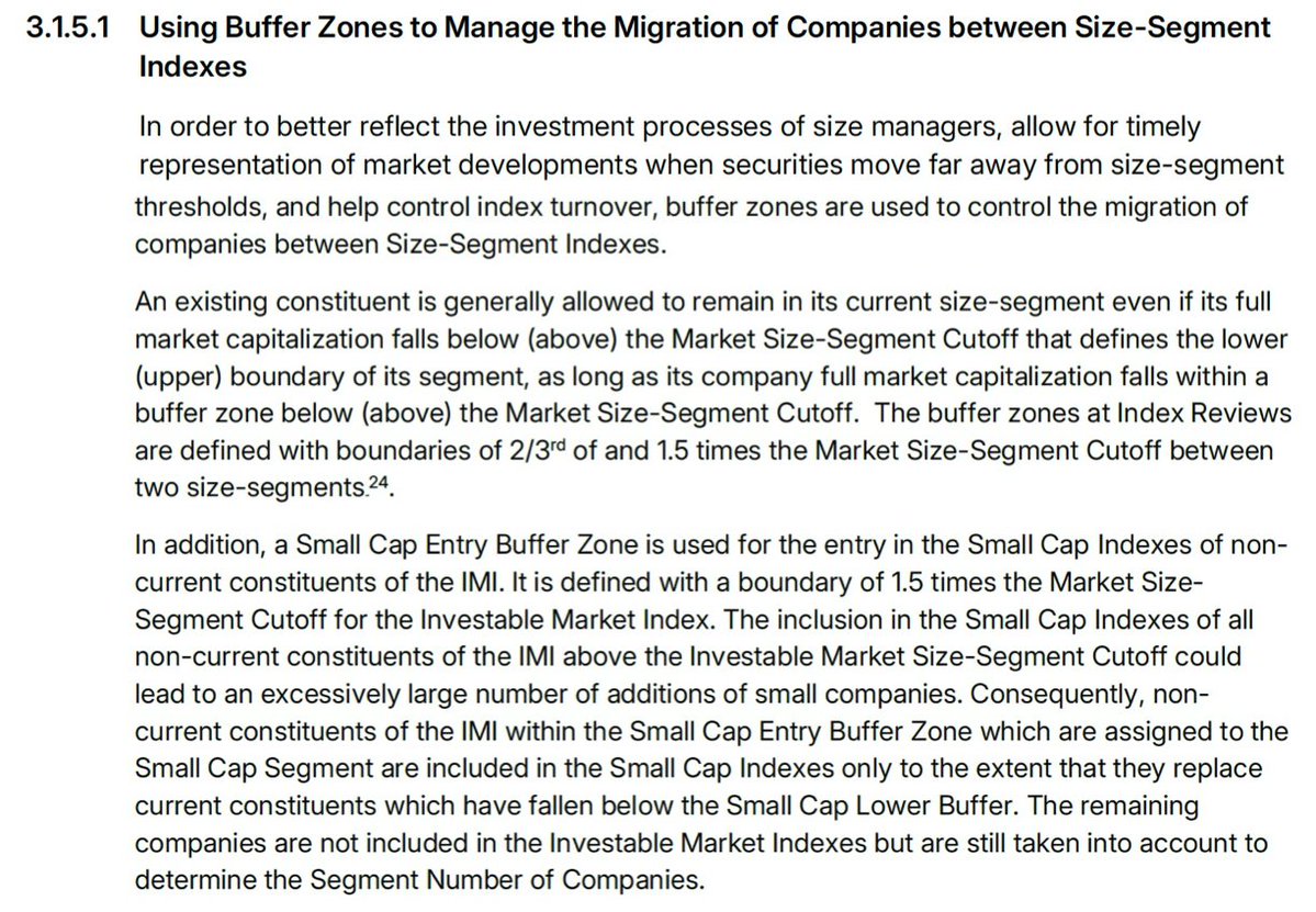 Ketentuan Buffer Zone tercantum dalam setiap dokumen MSCI Gimi Methodology dengan tampilan seperti di bawah ini :