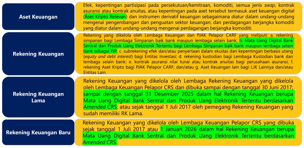 Cuma penambahannya ada Aset Kripto, Mata Uang Digital, Uang Elektronik, dan efek investasi lainnya. Ada pembagian 2 kategori Rekening Lama yang dibuka hingga 30 Juni 2017 dan Rekening Baru yang dibuka sejak 1 Juli 2017.