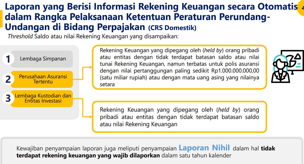 Perpajakan Lembaga-lembaga diminta lapor Informasi Keuangan sehingga peluang wajib pajak diperiksa jika tidak lapor dengan benar semakin besar.