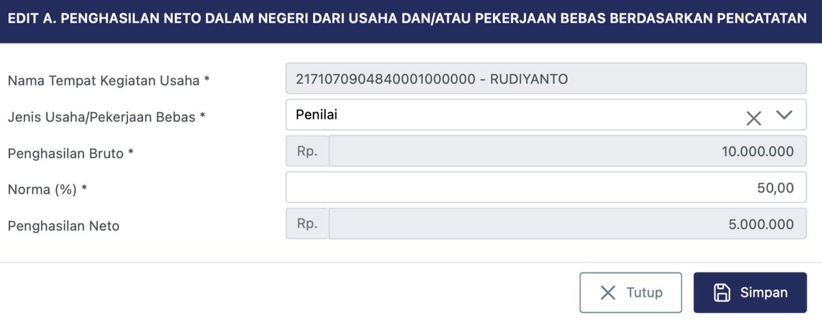 Untuk anda yang dokter, pengacara, notaris, instruktur olah raga, influencer, penulis, dan yang terima bukti potong dengan Dasar Pengenaan Pajak (DPP) tidak 100%