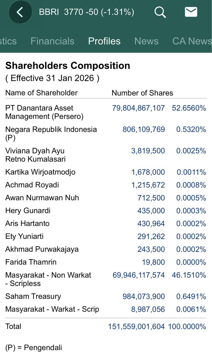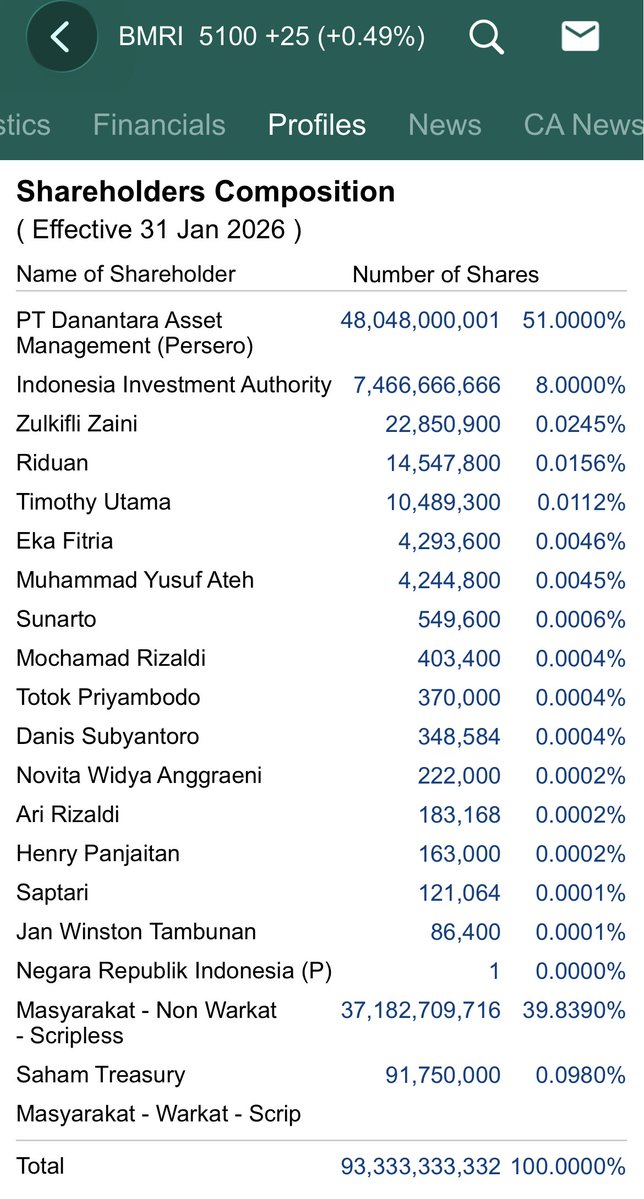 Kondisi BMRI persis seperti BBRI, Danantara tidak muncul.