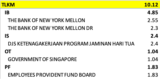 IB 4.85% dan OT 1.04% ini sangat berarti untuk TLKM karena FIFnya dari 50% bisa jadi 42.5% atau 47.5%.