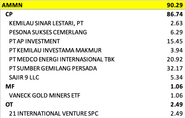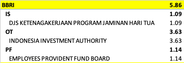 Data >1%, anehnya nama Danantara Asset Management tidak ada, yang muncul malah Indonesia Investment Authority (INA), Sovereign Wealth Fund bentukan jaman pak Jokowi dulu yang sudah dilebur ke dalam Danantara dalam kategori OT.